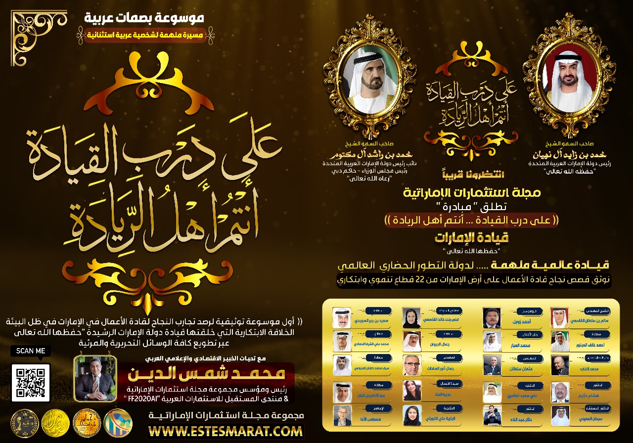 أعلنت مجموعة مجلة “استثمارات” الإماراتية، عن إطلاق مبادرتها الفريدة من نوعها بعنوان: “على درب القيادة.. أنتم أهل الريادة”، والتي تمثل أول موسوعة توثيقية ترصد وتوثق قصص وتجارب النجاح لقادة الأعمال المقيمين في دولة الإمارات من مختلف الجنسيات.