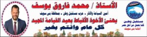 هنأء رجل الأعمال المعروف و السياسي البارز محمد فاروق رئيس لجنة السياحة بحزب مستقبل وطن ببني سويف و رئيس مجلس ادارة الدرة للسياحة قداسة البابا تواضروس و جموع الأخوة الاقباط بعيد القيامة المجيد.
