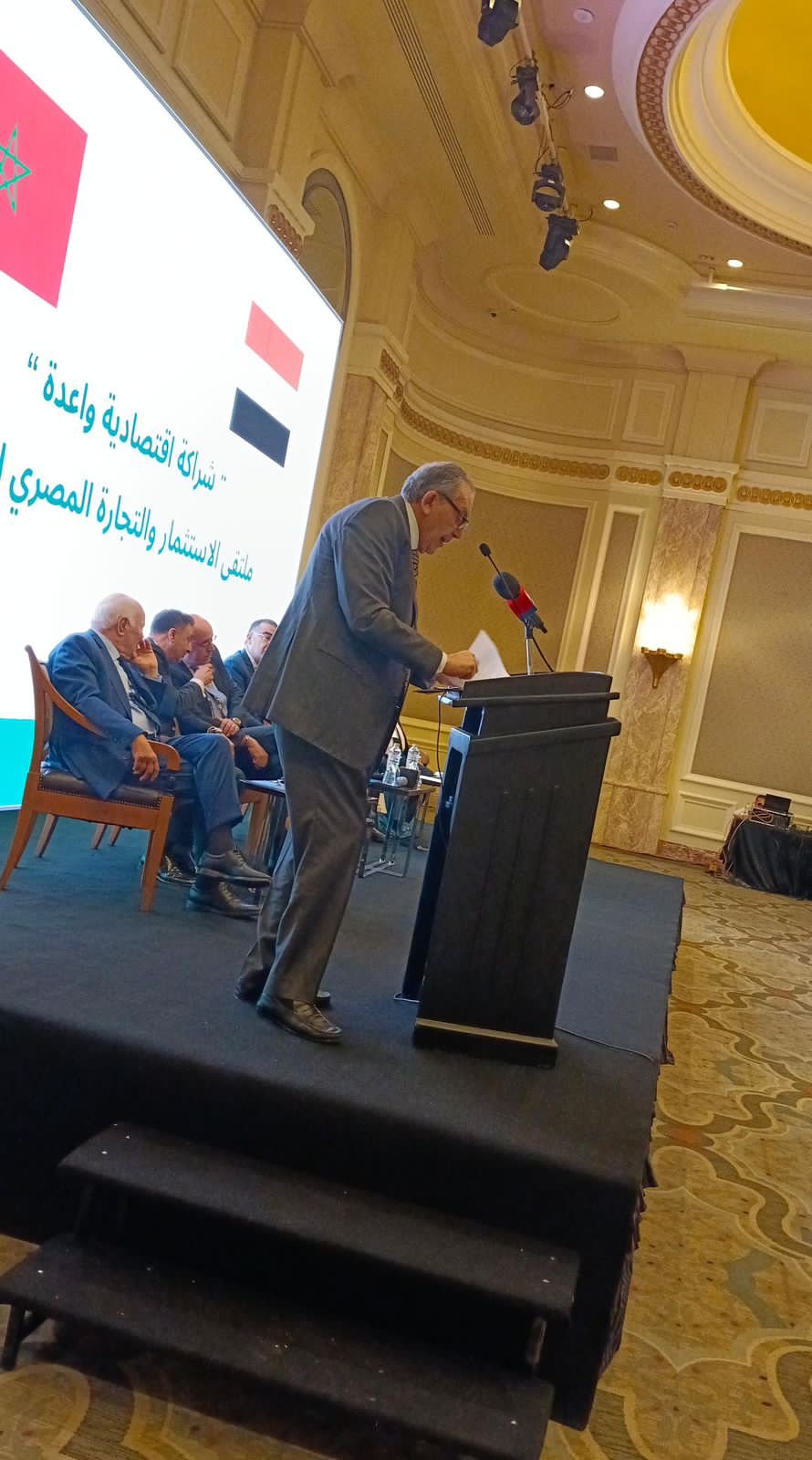 يشرفني بالإنابة عن الغرف التجارية المصرية وإتحادها العام والملايين من أعضائه، ان أرحب بمعالى الوزير في ارض الكنانة، وبالأشقاء أعضاء الجانبين من قيادات والمال والأعمال، من المغرب الشقيقة ومصر.