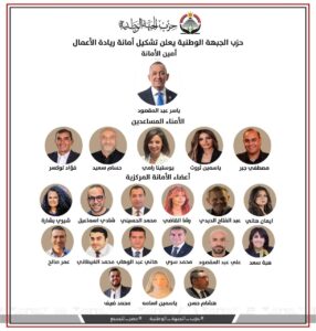 نية تشكيل أمانة ريادة الأعمال برئاسة د. ياسر عبد المقصود، والتي ضمت مجموعة متنوعة من الكفاءات والخبرات في مجالات الابتكار، والتكنولوجيا، والإدارة، والاستشارات والسياحة والعلاقات الدولية وذلك في خطوة تعكس اهتمام الحزب بتعزيز دور رواد الأعمال في الاقتصاد الوطني.
