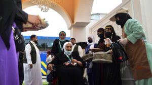 Pilgrims under the “Five-Star Tourism” category have begun arriving at their luxurious camps in the sacred site of Arafat, in a solemn and spiritual atmosphere, as they prepare for the most important rite of Hajj — the standing at Arafat.