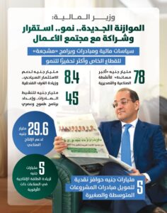 أوضح أنه تم تخصيص ٥ مليارات جنيه بالموازنة الجديدة لزيادة الطاقة الإنتاجية للصناعات ذات الأولوية، و٥ مليارات جنيه أخرى، حوافز نقدية لتمويل مبادرات المشروعات المتوسطة والصغيرة ومتناهية الصغر، و٣ مليارات جنيه لدعم صناعة السيارات ومستلزماتها ومكوناتها في مصر، و٣ مليارات جنيه لمبادرات التحول إلى مصادر طاقة أكثر كفاءة وأقل تكلفة.