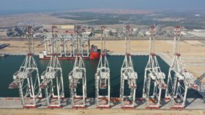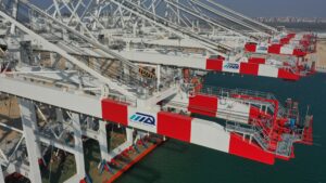 وفي السياق ذاته فقد تم حتى الآن استقبال 30 ونش ساحة ( RTG ) من أصل 40 مقرر توريدها تباعًا ، وتتميز هذه الأوناش بتقنيات صديقة للبيئة ، بما يضمن تشغيل المحطة بأعلى مستويات الكفاءة والاستدامة ، وتتميز أوناش الساحة بقدرات تشغيلية عالية ، حيث يبلغ ارتفاعها 21 متراً ، كما تدعم العمل بنظام مزدوج يتيح التشغيل بالكهرباء أو الديزل ، بما يعزز من مرونة وكفاءة التشغيل في مختلف الظروف ، وقد تم تصنيعها من قبل شركة ( Genma-Kalmar ) الصينية ، إحدى الشركات الرائدة عالمياً في صناعة معدات المناولة المتقدمة .