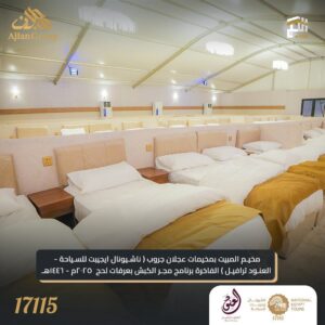 و تم تجهيز المبيت بسراير فردية فاخرة، سواء للرجال او النساء صُممت وفق أعلى معايير الراحة والدعم الجسدي، ومزودة بمراتب طبية عالية الجودة تضمن راحة بدنية متكاملة طوال فترة الإقامة. يكتمل هذا التجهيز بفرش داخلي أنيق وعازل، يوفّر بيئة هادئة تساعد على الاسترخاء و الراحة التامة. كما خُصصت نقطة كهرباء بجوار كل سرير لتلبية مختلف الاحتياجات الشخصية، بما يضمن تجربة إقامة متكاملة وكذلك نظام تهوية وتكييف متكامل يحافظ على اعتدال الجو.