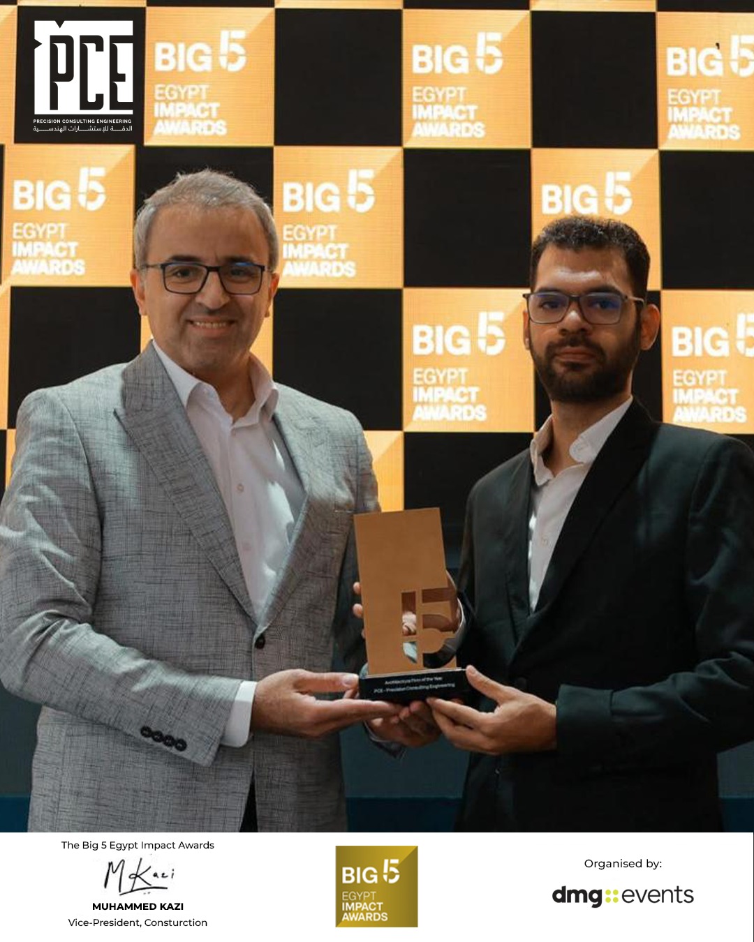 أعلنت Big 5 Egypt Impact Awards، فوز شركة الدقة للاستشارات الهندسية PCE بجائزة أفضل شركة في فئة الهندسة المعمارية لعام 2025 وذلك من بين 4 منافسين لهذه الفئة من شركات الاستشارات الهندسية في مصر.
