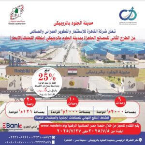 طرح 36 مصنعًا كامل التجهيزات لمنتجات الجلود تامة الصنع ضمن المرحلة الثالثة بالمدينة خلال الفترة من 5 وحتى 27 يوليو 2025 من خلال شركة القاهرة للاستثمار