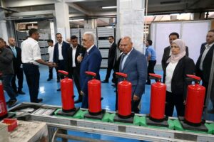 قام الفريق مهندس كامل الوزير، نائب رئيس الوزراء للتنمية الصناعية وزير الصناعة والنقل، بزيارة مصنع شركة بافاريا مصر بجسر السويس الرائد في إنتاج وتصنيع أجهزة ومعدات وأنظمة مكافحة الحرائق، حيث تفقد الوزير مراحل تصنيع الأجهزة ومعامل اختبارات المنتجات والخامات وقسم التشكيل الآلي والطلاء ومعالجة الأسطح والتعبئة والتجميع الآلي وتفقد قسم روبوت لحام أجهزة الإطفاء على عجل وخط الدهان والمخازن الآلية ورصيف التصدير.