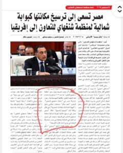 “مصر تسعى إلى ترسيخ مكانتها كبوابة شمالية لمنظمة شنغهاي للتعاون في إفريقيا، وتهدف إلى تحويل شراكتها في المنظمة بفاعلية إلى جسر لمشاركة المنظمة في جميع أنحاء القارة الإفريقية.”