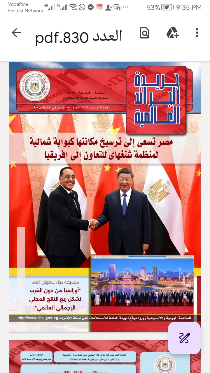 وقد حظيت هذه الرؤية باهتمام محلي، حيث اختارت جريدة الجرائد العالمية الصادرة عن الهيئة العامة للاستعلامات جزءًا من هذا التصريح عنوانًا رئيسيًا على غلاف عددها الأسبوعي، في انعكاس واضح لأهمية الدور المصري في فتح آفاق التعاون بين إفريقيا ومنظمة شنغهاي.