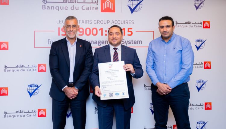 بنك القاهرة يحصل على شهادة الأيزو 9001:2015 لمجموعة الشئون القانونية في نظام إدارة الجودة.