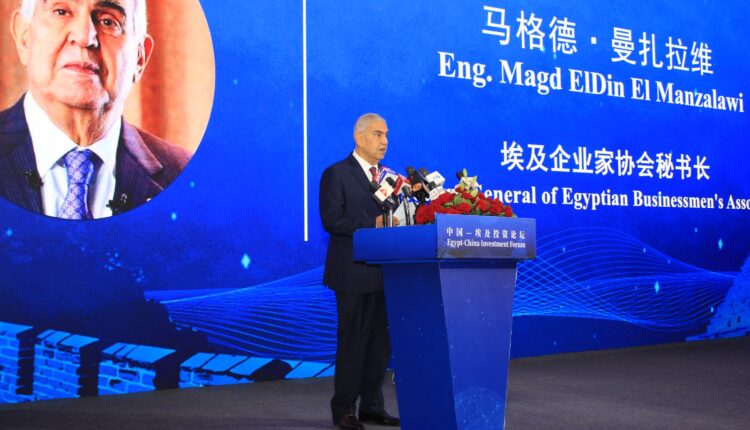 وفي كلمته الافتتاحية قال المهندس مجد الدين المنزلاوي الأمين العام لجمعية رجال الأعمال المصريين، إن تنظيم هذا المنتدى حلمًا عملت الجمعية على تحقيقه منذ فترة، وجاء تتويجًا لمسيرة طويلة من العمل والتعاون التي تقوده جمعية رجال الأعمال المصريين من خلال لجنة تنمية العلاقات الاقتصادية مع الصين والتي تم انشاؤها عام 2007 حيث قامت الجمعية بتأسيس تلك اللجنة ايماناً منها بأن الصين هي مستقبل الاقتصاد العالمي.